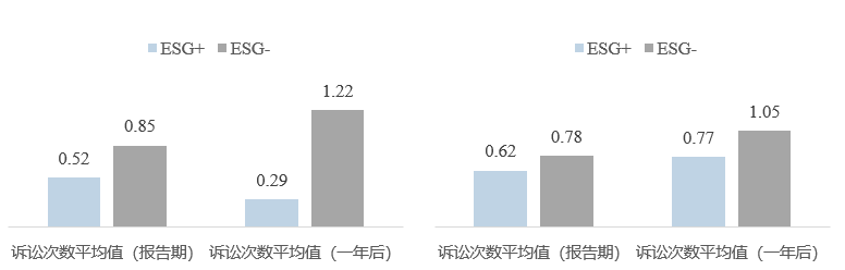 ESG高评分组在未来一年的运营中会面临更少的监管处罚,涉及的诉讼数量也明显较少,说明ESG评分较高的公司具有更低的非系统性风险。这种现象在中小市值的公司中更为明显,也体现了ESG对于完善企业治理水平,提升竞争力,推动高质量发展具有重要的作用。