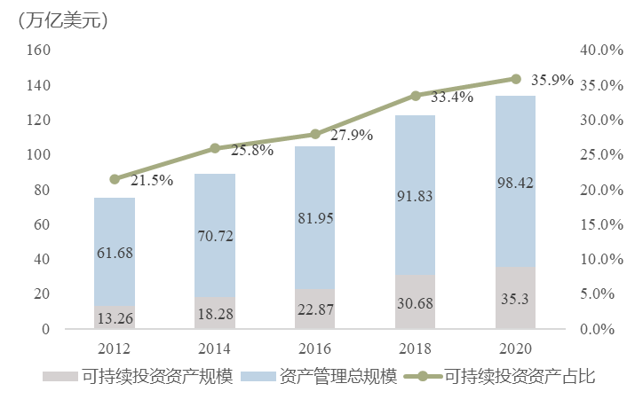 一是ESG投资有利于推动高质量资本供给,引导资金支持绿色产业发展。根据GSIA统计,ESG投资资产管理规模从2012年初的13.26万亿美元增加至2020年初的35.30万亿美元,占资产管理总规模的比例从21.5%上涨至35.9%。近年来,随着双碳战略不断深入,国内ESG指数和基金产品快速扩容,目前中证指数发布了133条ESG等可持续发展指数,跟踪产品82只,产品规模近1200亿元,为投资者提供丰富的ESG指数工具。随着影响力不断提升,ESG投资有利于引导上市公司关注绿色与共享等外部友好的可持续发展理念,发挥资金引导作用,推动上市公司高质量发展,为中国特色估值体系建设提供动力。