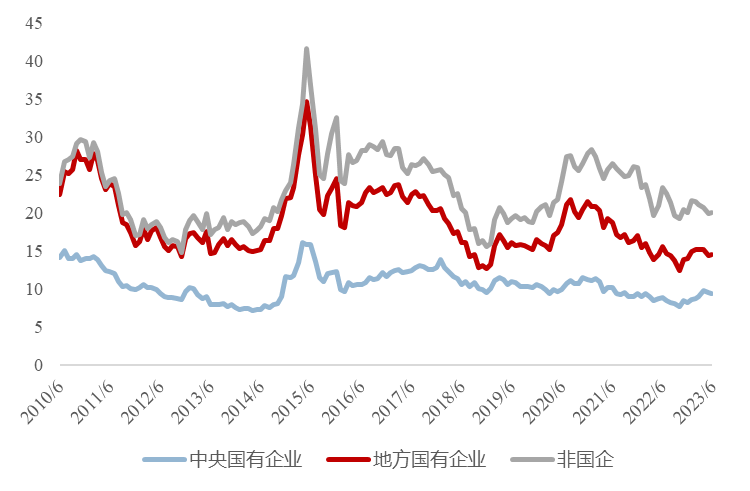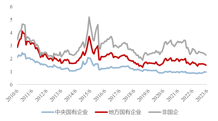 央国企市值占比较高,营业收入和利润规模大,但估值长期处于偏低状态。截至2023年6月,A股央国企数量占比27%,市值占比39%,营收和净利润占比分别为65.39%和69.92%。传统估值体系并未展现出央国企在顺应国家战略导向、产生较大社会效益等方面的长期发展优势。2010年以来,央国企估值整体弱于非国企,截至2023年6月,国企PE(TTM)/PB估值为14.49/1.50,央企PE(TTM)/PB估值为9.43/0.95,非国企PE(TTM)/PB估值为20.10/2.29。