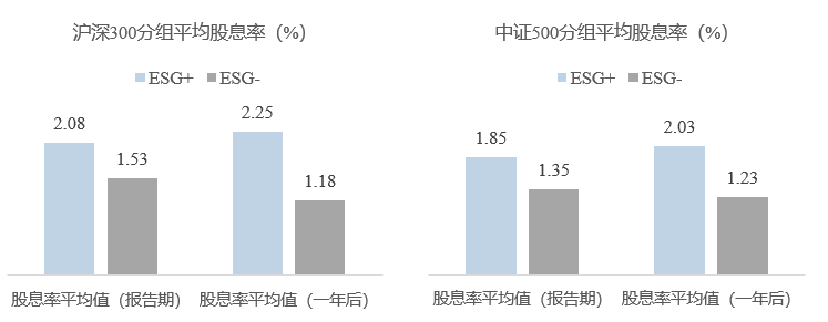 一是ESG投资有利于发掘企业的长期投资价值,引导投资者关注长期回报。在盈利和风险传导机制下,ESG表现优异的公司在未来具有更好的基本面表现、更低的风险以及更稳定的估值。一方面,盈利机制下ESG表现优异的企业在资源利用、人力资本发展以及创新管理等方面形成的竞争优势,使得公司具有较强的盈利能力,从而具有较强的分红水平,增强投资者的获得感。研究显示,ESG高评分组在当期及未来一年的股息率水平都比低分组更高,表明ESG评分较高的公司具有更强的分红意愿和能力;另一方面,风险传导机制下,ESG表现优异的企业具有更强的风控能力,更低风险事件发生概率,尾部风险更低。数据显示,ESG高评分组具有更小的回撤水平,尤其在市场处于下行状态,ESG高评分组相比低评分组估值降幅更小。