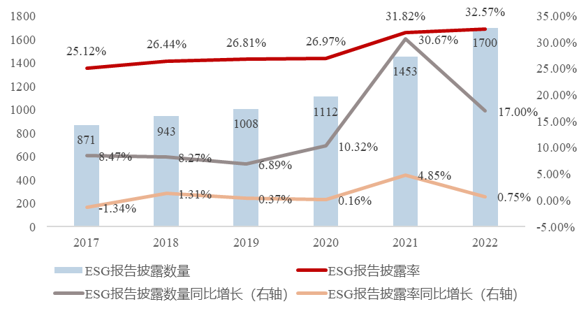 目前,上市公司在财务信息方面披露较好,但公司治理、环境保护等ESG信息披露明显不足,影响了市场对于企业相关风险的识别。原因在于,一是国内市场缺少权威共识的ESG信息披露标准。目前ESG信息披露较为零散,要求不够准确。以中证800指数样本公司中,碳排放、水资源利用情况等信息披露明显改善,但明显弱于社会责任报告的披露,整体市场仍缺少一套规范、权威的ESG信息披露标准;二是企业主动披露ESG信息意愿也不足,上市公司披露可持续发展相关报告的比例由2017年约25%上升至2022[1]年32%,仅占A股公司的1/3,披露信息质量参差不齐,存在定性内容多、定量内容少、报喜不报忧,风险揭示不充分等问题。