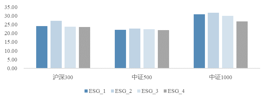 图1:2022年沪深300、中证500与中证1000样本公司ESG分组市盈率