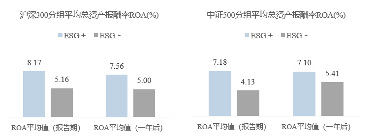 图6:2021-2022年沪深300、中证500 ESG分组与ROA水平