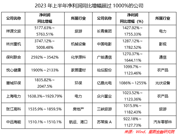 从单家公司净利润预增情况看,上半年净利润同比增幅在1000%以上的合计16家,净利润同比增幅在500%至1000%的合计12家,净利润同比增幅在100%至500%的合计99家,这意味着净利润同比翻番或以上的公司合计达127家,在业绩预喜公司中的占比超过40%。