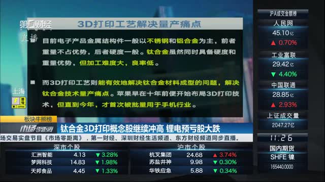 钛合金3D打印概念股继续冲高,金橙子涨超13%,金太阳、铂力特、华曙高科、有研新材、银邦股份、统联精密等纷纷冲高。锂电池板块预亏股早盘大幅下挫,德方纳米大跌超15%,龙蟠科技、丰元股份跌超7%,江特电机跌超5%。