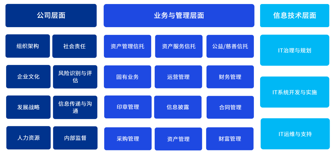 从原来的融资类业务,转向投资类业务和服务业务,一方面,要求信托公司在管理架构方面,重新建设内部职能分工与授权体系,进一步明晰调整后的业务分工与责任承担要求,调整内部业务管理架构。另一方面,也促使信托公司更加注重自身的业务运营管理能力与信息系统服务能力建设,通过智能自动的运营管理体系应对新资产管理、资产服务类信托业务高频、海量、实时的数据处理、运营清算和信息披露需求。