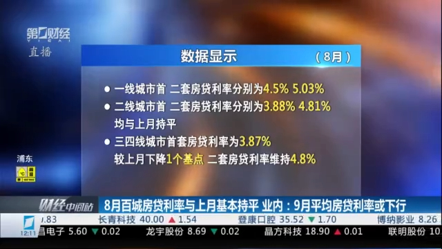 近期,房贷利率变化情况备受关注。贝壳研究院的最新数据显示,8月百城首套主流房贷利率平均为3.90%,二套主流房贷利率平均为4.81%,均与上月基本持平。8月首二套主流房贷利率较去年同期分别回落42BP和25BP。业内人士预计,9月平均房贷利率可能下行,但LPR下调空间可能已不大,未来房价调整压力大的城市可能通过下调加点数来降低房贷利率,降低购房成本。