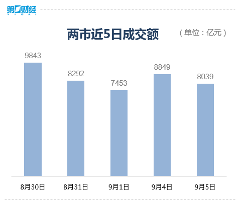 9月5日,三大指数集体低开,全天基本维持弱势震荡走势。截至收盘,沪指跌0.71%,深成指跌0.67%,创业板指跌0.32%。