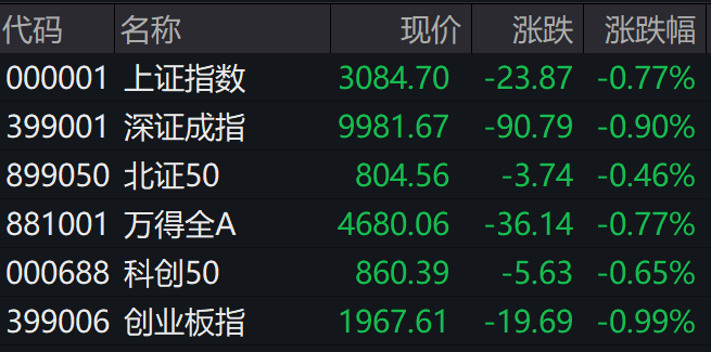 9月21日,A股三大指数集体收跌,截至收盘,沪指跌0.77%失守3100点,深证成指跌0.90%失守10000点,创业板指跌0.99%。