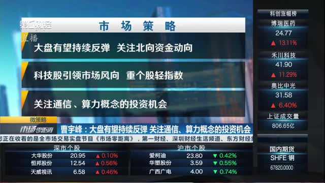 大盘有望持续反弹,关注北向资金动向。科技股引领市场风向,重个股轻指数。关注通信、算力概念的投资机会。行业研读:算力概念。1、部分大厂算力业务营收占比提高;2、近期国内算力订单量和金额大增;3、AI,机器人等前沿科技发展促进算力产业发展。
