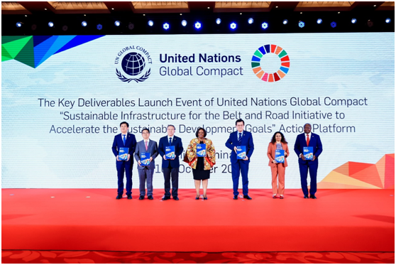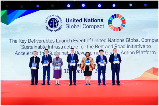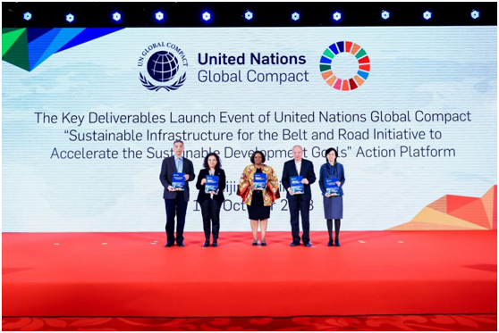 在联合国助理秘书长、联合国全球契约组织总干事桑达·奥佳博女士(Ms. Sanda Ojiambo),和中国政府代表、“一带一路”行动平台高级别指导委员会、各国驻华使节、各国企业和学术界等各界代表的见证下,联合国全球契约组织重磅发布: