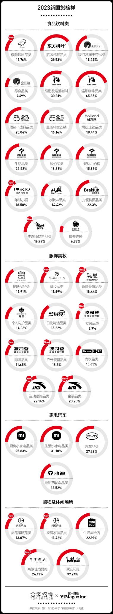 8月14日至9月15日,就在这股热潮发生前后,我们启动了第5年的“新国货榜样”消费者喜爱度调研。根据市场变化,我们增加了量贩特卖、电解质饮料、香薰香氛等全新的评选类别,并继续对一些已经成熟的品类实行“毕业机制”。基于4700份消费态度,在37个品类中,有27个品牌成为今年的“新国货榜样”。