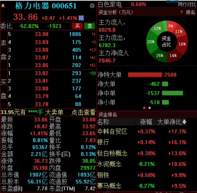 10月27日,格力电器、宁德时代盘中拉升,截至发稿,格力电器涨超1%,报33.86元;宁德时代涨超2%,报181.99元。