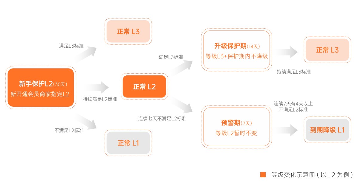 3. 会员运营评估:根据近30天会员成交占比、权益在线天数和进阶权益在线天数三大维度,抖音将品牌会员运营水平分为3级,从L1至L3依次为“入门品牌”“积极品牌”和“高手品牌”。