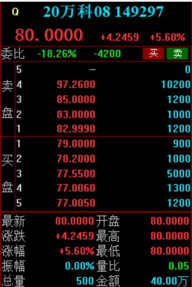 11月6日,万科境内债午后涨势加快,“20万科08”涨超5%,“20万科06”涨近5%。