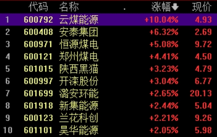 煤炭开采加工板块午后活跃,云煤能源涨停,恒源煤电、郑州煤电等跟涨。
