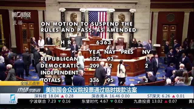 当地时间14号,美国国会众议院以336票赞成、95票反对的投票结果通过一项临时拨款法案,以避免政府停摆。大多数共和党议员和民主党议员都投了赞成票。