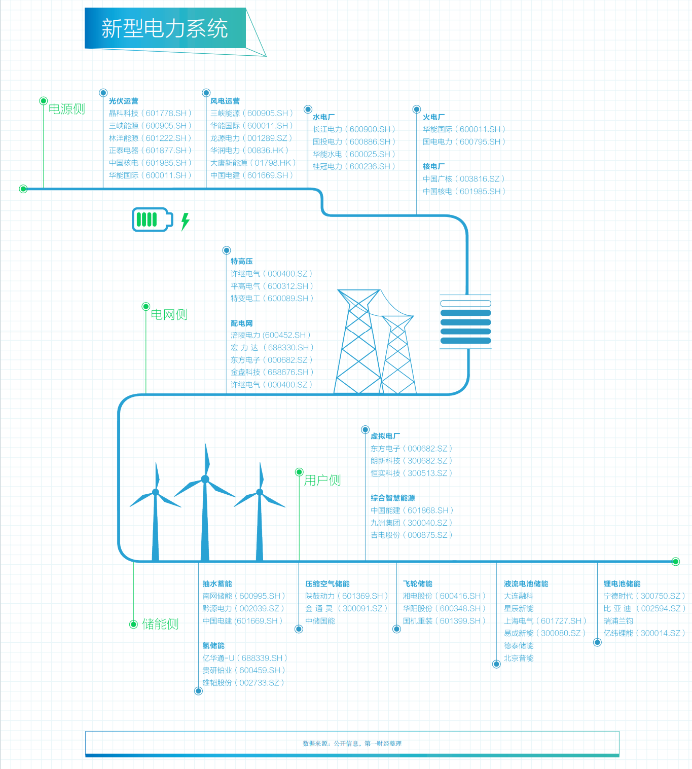 作为实现双碳目标的重要基础,我国新型电力系统建设持续加速,所带来的巨量需求背后,蕴含着哪些机遇?2023年12月13日正式对外发布的第一财经《2023年科创产业图谱》中,对国内新型电力系统产业链进行深度解析,在电源侧、电网侧、用户侧以及储能侧诸多产业链细分环节中寻找并记录最有代表性企业,以最直观的形势呈现给广大读者。