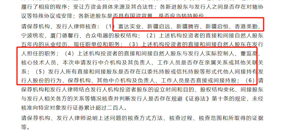反馈意见显示,证监会针对规范性问题要求保荐机构、发行人律师核查说明,发行人所有直接和间接股东是否存在以委托持股或信托持股等形式代他人间接持有发行人股份的行为,保荐机构、其他中介机构及负责人、工作人员是否直接或间接持股。但由于是核准制,IPO问询回复内容为非公开信息,无法查询到合盛硅业的回复。