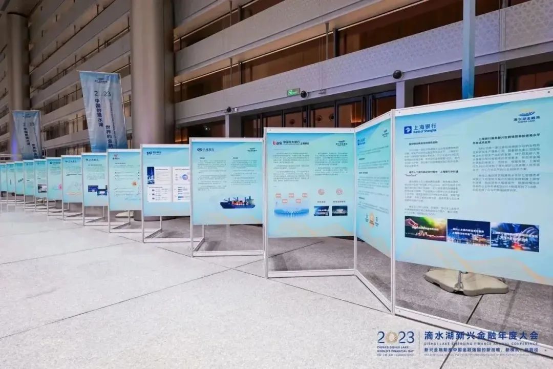 仅仅一年间,临港新片区的新兴金融有了诸多的进展。在12月8日举行的第二届“滴水湖新兴金融大会”上,各金融机构的展示板已摆了整整一条走廊。仔细察看,新内容不少。中国工商银行、中国农业银行、中国银行、上海农商行等机构都展出了各自在新兴金融领域的特色与案例。站在一眼看不到头的展板前,顿时有种新兴金融的新兴之势。