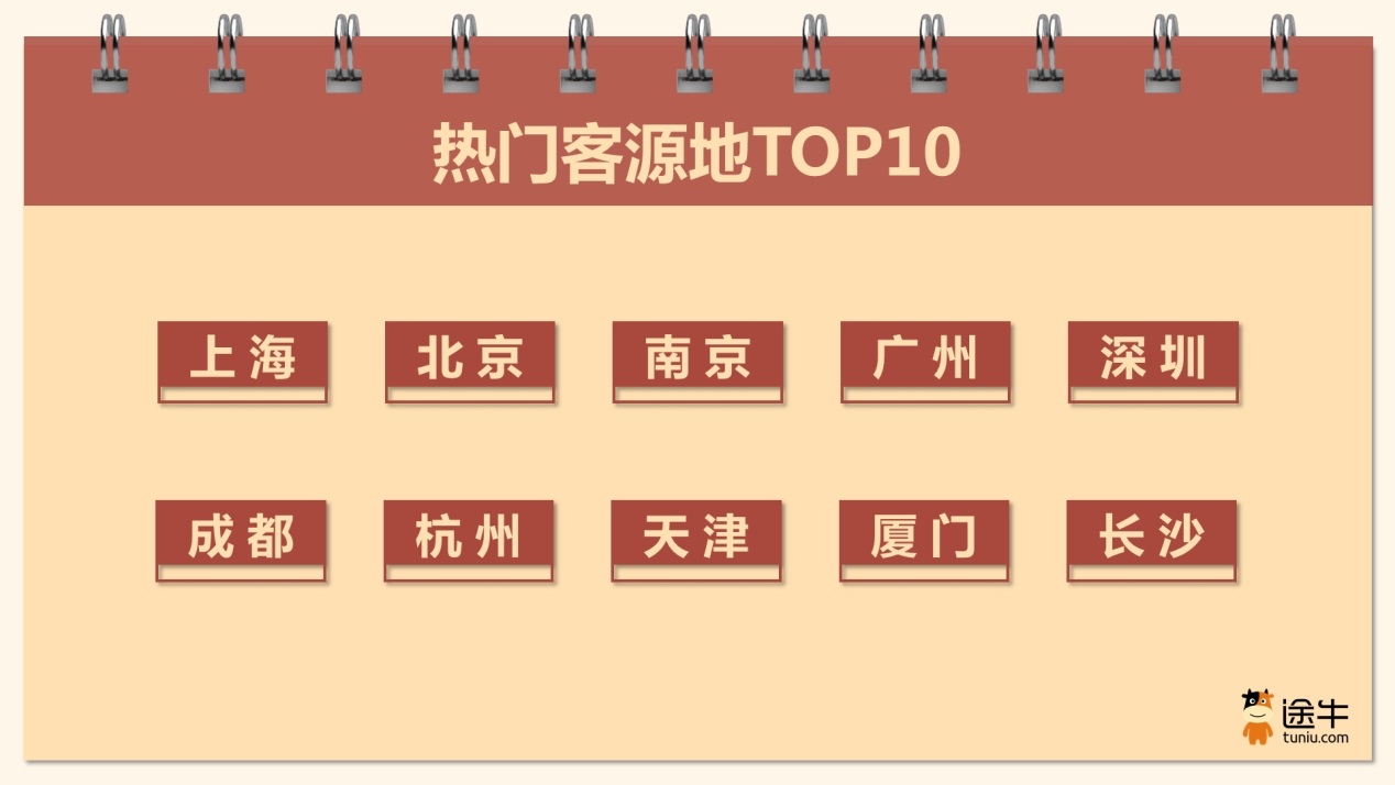 整体来看,途牛截至目前的最新预订数据显示,上海、北京、南京、广州、深圳、成都、杭州、天津、厦门、长沙等地用户对元旦出游展现出了更为热切的期待,出游热情位列热门客源地TOP10榜。北京、成都、三亚、广州、西安、上海、南京、深圳、西双版纳、黑龙江等位列元旦假期国内游热门目的地榜单前列。