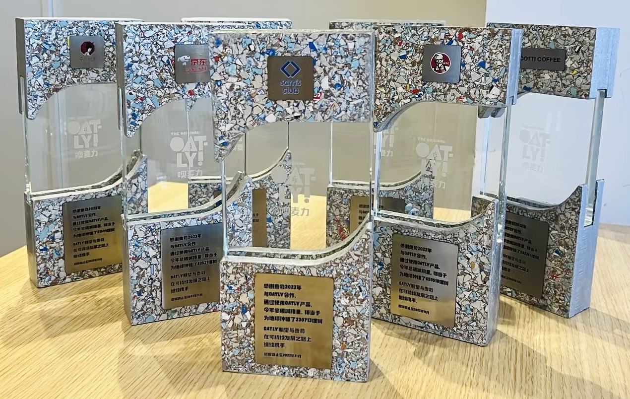 最近,在上海举办的一场健康和可持续食品研讨会上,OATLY特别为合作伙伴颁发了可持续奖杯,通过总碳减排量激励客户在可持续道路上继续发展,为可持续环境保护贡献力量。