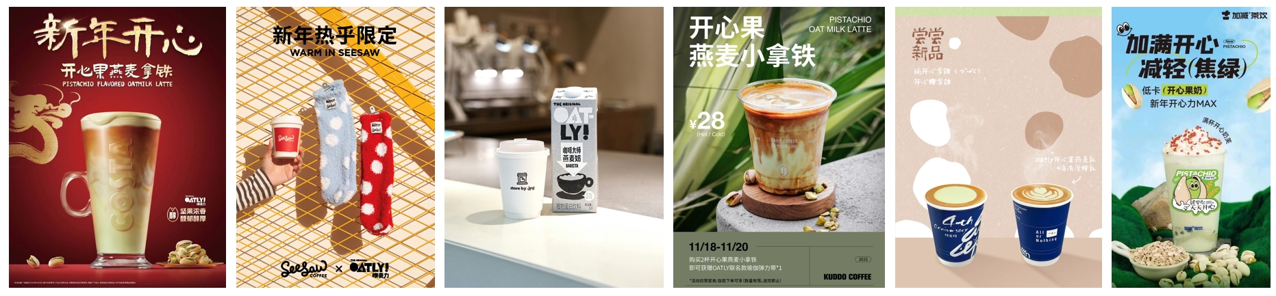 2023年第四季度来,OATLY在中国市场先后推出米乳、开心果燕麦奶等植物基产品,满足不同消费者口味需求的同时,进一步丰富植物基乳制品品类。同时,OATLY与多家知名咖啡品牌展开合作,联合全国连锁品牌Costa咖啡、Seesaw咖啡,以及精品咖啡茶饮品牌:store by .jpg,KUDDO咖啡,横竖横咖啡,加减茶饮等,在岁末年初上线多款联名咖饮套餐。