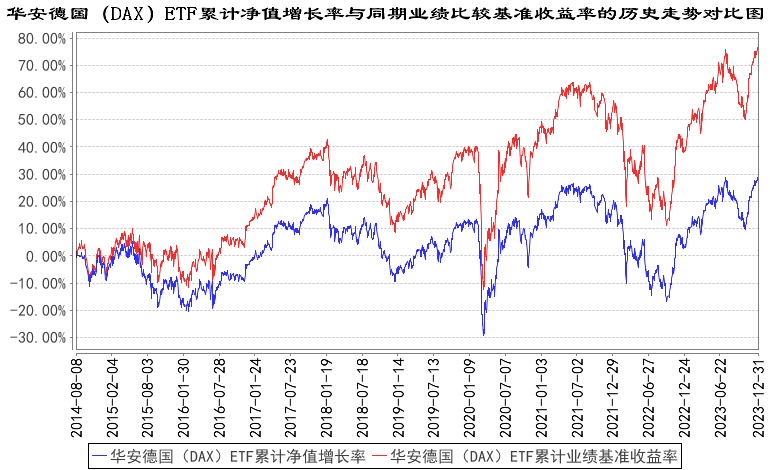 报告显示,华安德国(DAX)ETF2023年四季度净值收益率,业绩比较基准个百分点,以下为其成立以来净值收益率与同期业绩比较基准(德国DAX指数(DAXIndex)收益率(经汇率调整后的总收益指数收益率))的走势对比: