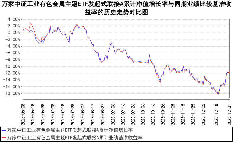 报告显示,业绩比较基准个百分点,以下为其成立以来净值收益率与同期业绩比较基准(中证工业有色金属主题指数(H11059.ZZ)收益率×95%+银行活期存款利率(税后)×5%)的走势对比: