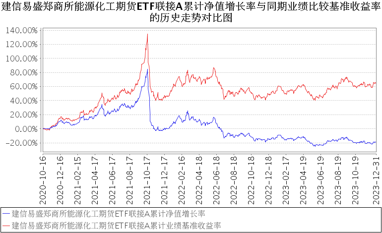 报告显示,建信易盛郑商所能源化工期货ETF联接2023年四季度净值收益率,业绩比较基准个百分点,以下为其成立以来净值收益率与同期业绩比较基准(易盛郑商所能源化工指数A收益率×95%+银行活期存款税后收益率×5%)的走势对比: