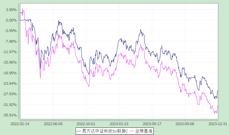 1月19日,易方达中证科技50交易型开放式指数证券投资基金联接基金2023年第4披露2023年四季度报告。该只基金报告期内亏损396.74万元,期末基金规模为6,402.54万元。