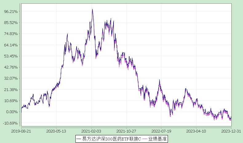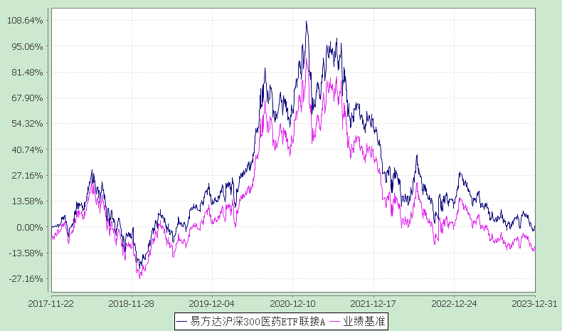 报告显示,业绩比较基准个百分点,以下为其成立以来净值收益率与同期业绩比较基准(沪深300医药卫生指数收益率×95%+活期存款利率(税后)×5%)的走势对比: