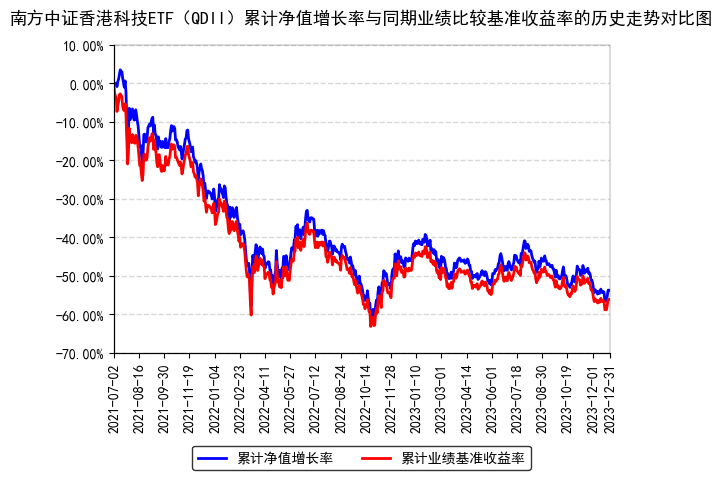 报告显示,南方中证香港科技ETF(QDII)2023年四季度净值收益率,业绩比较基准个百分点,以下为其成立以来净值收益率与同期业绩比较基准(本基金的业绩比较基准为经估值汇率调整的标的指数收益率。本基金标的指数为中证香港科技指数,及其未来可能发生的变更。)的走势对比: