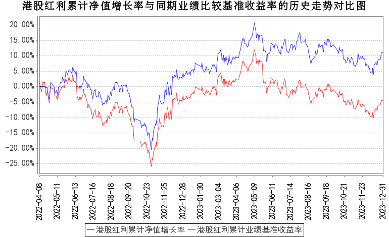 报告显示,业绩比较基准个百分点,以下为其成立以来净值收益率与同期业绩比较基准(业绩比较基准为中证港股通高股息投资指数收益率。)的走势对比: