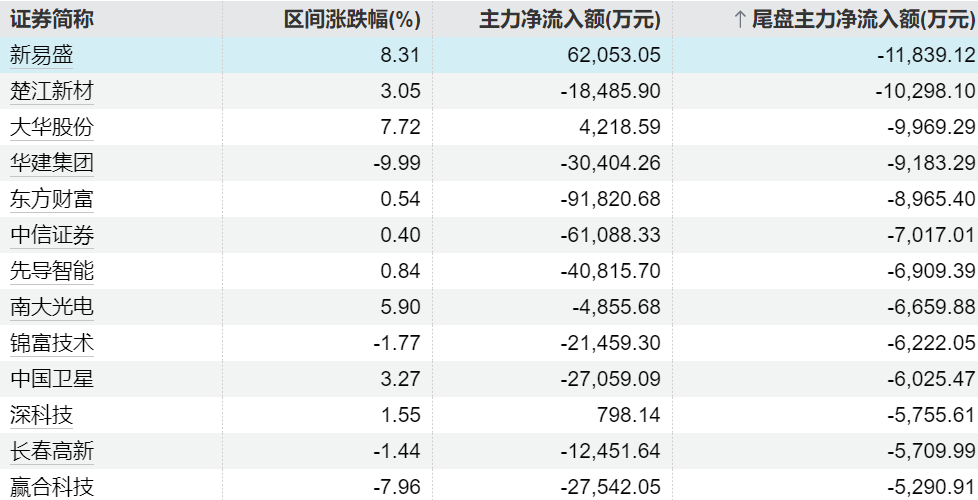 主力今日尾盘买卖这些个股