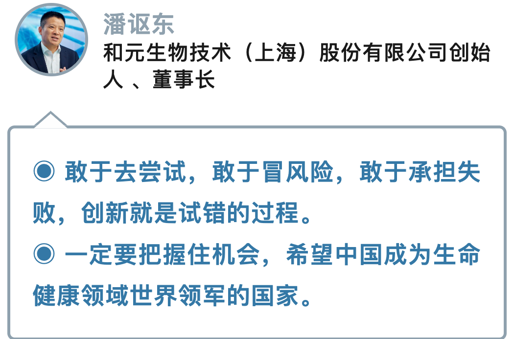 “我现在把自己还是定位为创业者,我的梦想就是,通过细胞基因治疗,运用生物医药领域最顶端的技术,把人类的重大疾病解决掉。”潘讴东说,面对生命科学领域技术迭代的科学时代,一定要把握住机会,希望中国在这个领域成为世界领军的国家。