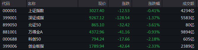 3月7日,A股三大指数集体下跌。截至收盘,沪指跌0.41%,深成指跌1.37%,创业板指跌2.33%。
