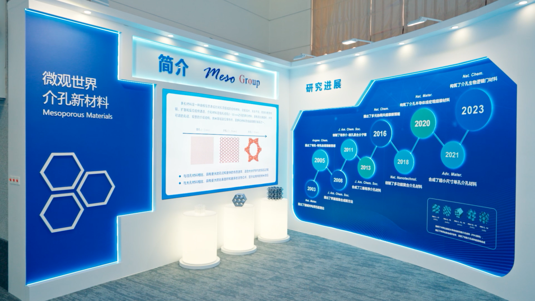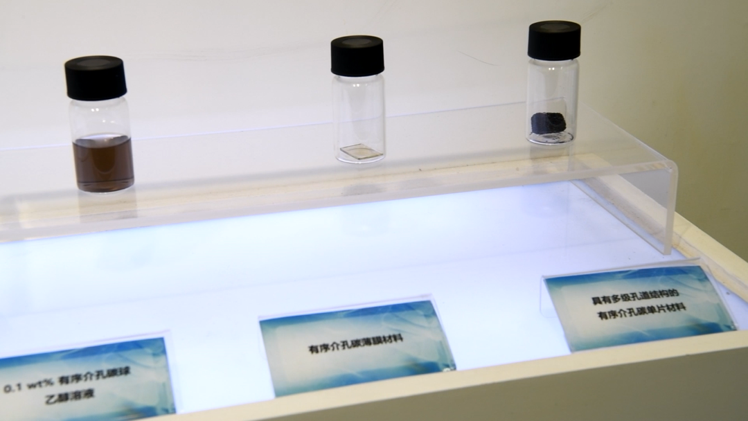 朴素的布袋摆放在专门布置的“功能介孔材料”展厅里。展厅展示了有关微观世界介孔新材料的介绍、研究进展、研究成果、学术影响、应用领域等,以及各类实物样品,还保存着一本本实验笔记。这是科研团队十年如一日辛勤工作,将奇思妙想付诸实践的生动记载。