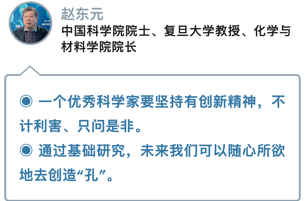 20多年时间里,科学家勇攀一座座科学高峰,把热爱的事业做到极致,在介孔材料领域取得“从0到1”原创性突破,创制了有序介孔高分子和碳材料,带领团队发明了20余种以复旦大学命的介孔材料,并将介孔材料成功运用到石油化工、能源环境等领域,创造了巨大价值。赵东元说,回头看,介孔材料制备从无机到有机的大跨越,只是薄薄一张纸,创新就是捅破这张纸。