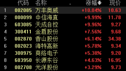 飞行汽车概念再度活跃,万丰奥威涨停斩获二连板,中信海直、天成自控涨停,金盾股份涨超7%。