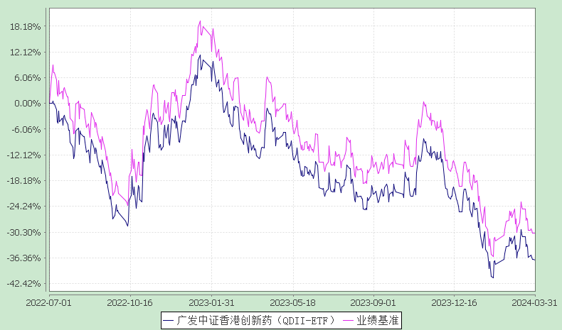 报告显示,广发中证香港创新药(QDII-ETF)2024年一季度净值收益率,业绩比较基准个百分点,以下为其成立以来净值收益率与同期业绩比较基准(中证香港创新药指数收益率(人民币计价))的走势对比: