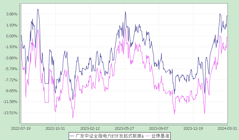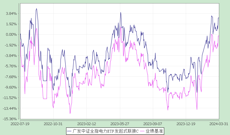 报告显示,业绩比较基准个百分点,以下为其成立以来净值收益率与同期业绩比较基准(中证全指电力公用事业指数收益率×95%+活期存款利率(税后)×5%)的走势对比: