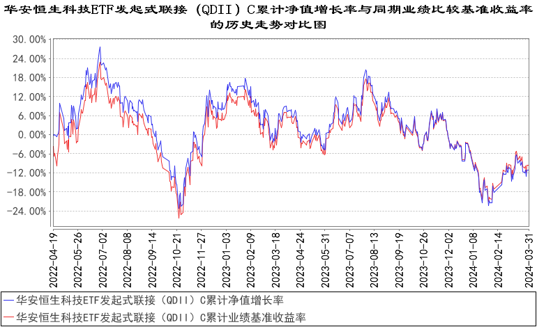 对于报告期内基金投资策略和运作分析,华安恒生科技ETF发起式联接(QDII)基金经理表示,一季度,国内经济在生产、消费、出口等方面继续保持向好趋势,货币政策继续发力稳增长。海外方面,由于美国强劲的劳动力市场以及较强的通胀粘性,市场对于美联储降息预期不断延后,对港股市场的风险偏好压制明显,尤其对于科技板块冲击较大。另外一季度海外地缘冲突有所升级,也对港股市场造成扰动。港股在1月份大幅回落,后期逐步企稳,整体一季度表现不佳。恒生科技指数的成份股整体上商业模式相对稳健,覆盖中国造车、无人驾驶、互联网与AI大模型、芯片(159813.SZ;159813.OF)等未来发展方向,具备中长期配置价值。作为基金管理人,我们继续坚持积极将基金回报与指数相拟合的原则,降低跟踪偏离和跟踪误差,勤勉尽责,为投资者获得长期稳定的回报。