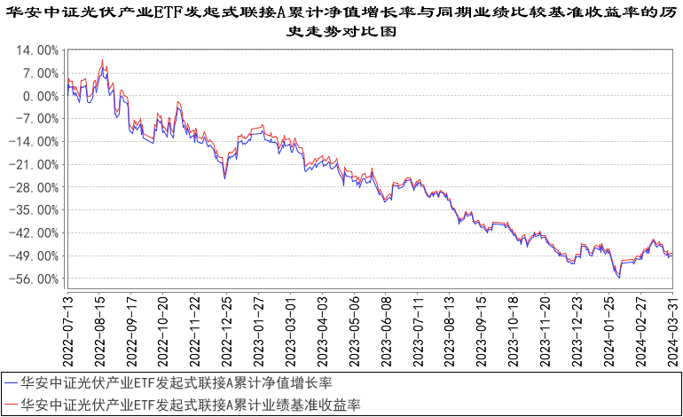 报告显示,业绩比较基准个百分点,以下为其成立以来净值收益率与同期业绩比较基准(中证光伏产业指数(931151.ZZ)收益率×95%+商业银行税后活期存款利率×5%)的走势对比: