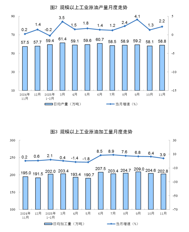 国家统计局:11月份规上工业原油产量1763万吨,同比增长2.2%