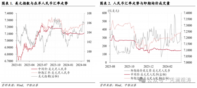 4月3日,央行货币政策委员会2024年第一季度例会公告指出,“坚决对顺周期行为予以纠偏,坚决防范汇率超调风险,防止形成单边一致性预期并自我强化”。4月18日,央行副行长、外汇局局长朱鹤新在国新办新闻发布会上强调,“保持人民币汇率基本稳定的目标和决心是不会变的,人民币汇率有基础、有条件保持基本稳定”,重申“坚决对顺周期行为予以纠偏,防止市场形成单边预期并自我强化,坚决防范汇率超调风险”。