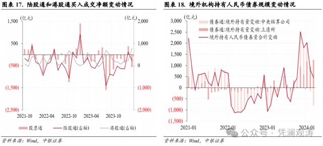 当月,陆股通和债券通合计,外资连续5个月净增持人民币资产,净增持规模由上月1411亿降至670亿元,为上年11月份开始净增持以来新低。