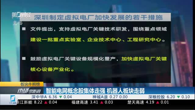 智能电网、虚拟电厂概念股开盘拉升,奥特迅快速涨停,北京科锐、三晖电气随后封板,金智科技、中恒电气、友讯达、积成电子等跟涨。昨日异动的机器人概念集体遇挫,北特科技跌停,步科股份、斯菱股份大跌超5%。