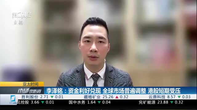 亚太主要股指普遍受压,港股相对跌幅较大,后市如何观察?红蚁资本投资总监李泽铭认为,资金利好兑现,全球市场普遍调整,港股短期受压。