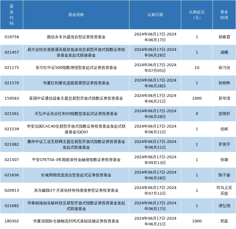 数据显示,2024年06月17日共有13只新基金发行。其中股票型基金8只,包括易方达恒生港股通高股息低波动交易型开放式指数证券投资基金发起式联接基金、东方红中证500指数增强型发起式证券投资基金、华夏红利(002011.OF)量化选股股票型证券投资基金等,混合型基金2只,债券型基金2只,其他类型1只。
